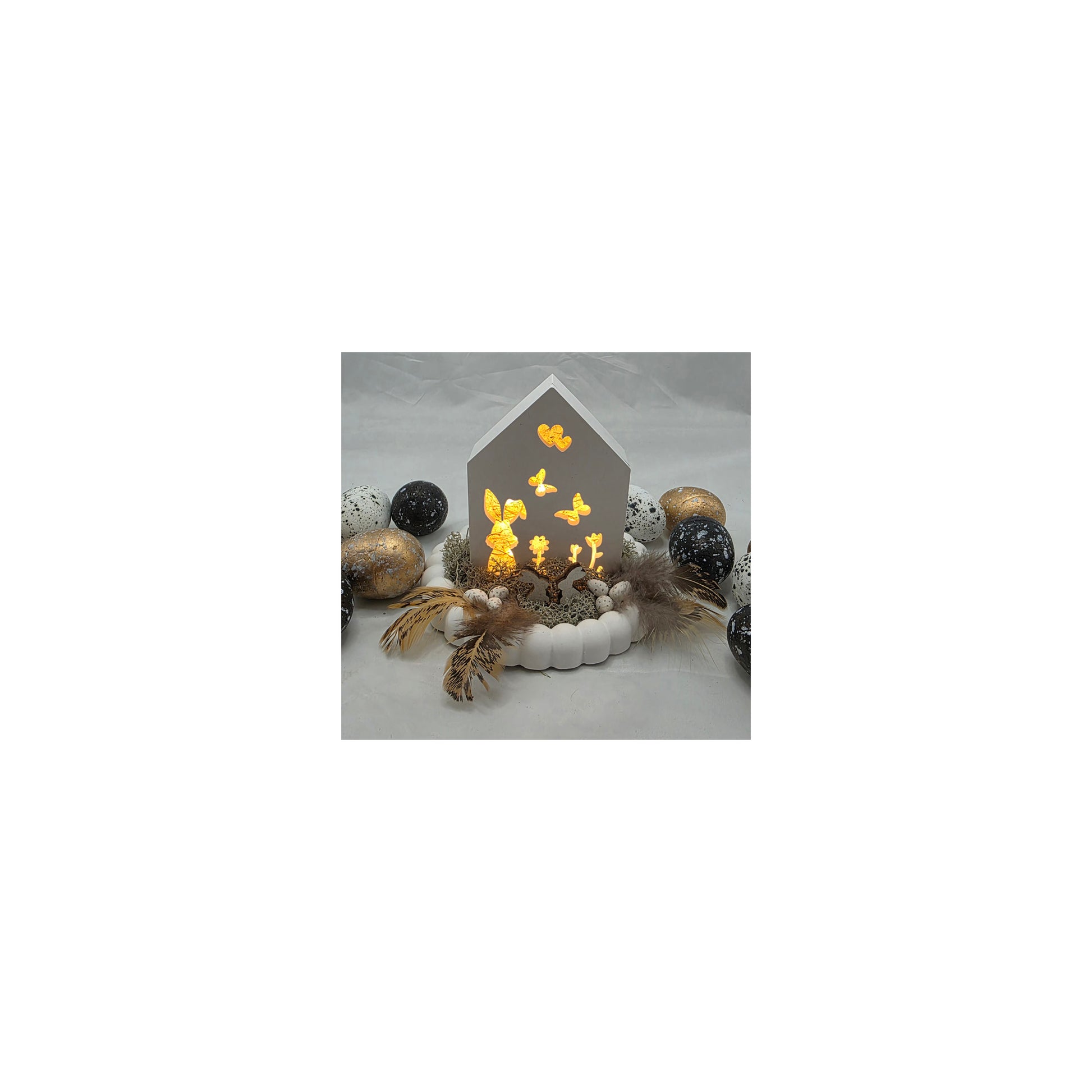 Geschenkset aus Raysin, Hasenhaus, Ei und Hase beleuchtet