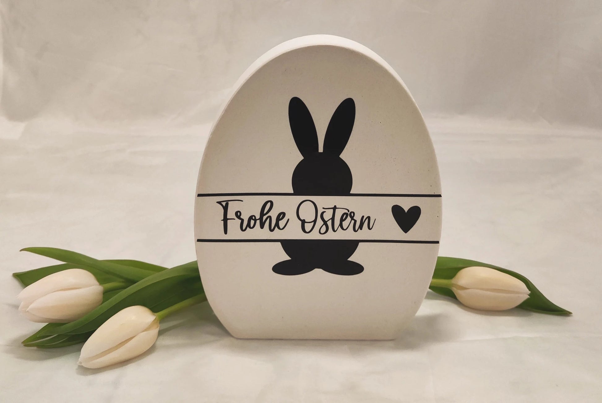 Großes Ei aus Raysin gegossen und mit schwarzer Vinylfolie beplottet. Zeitlos schöne Osterdeko.