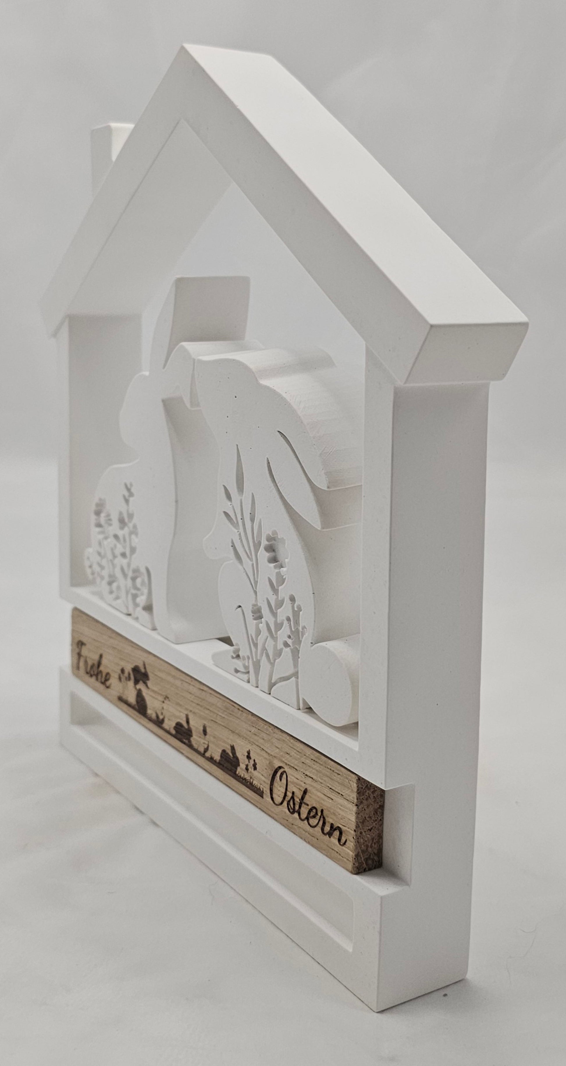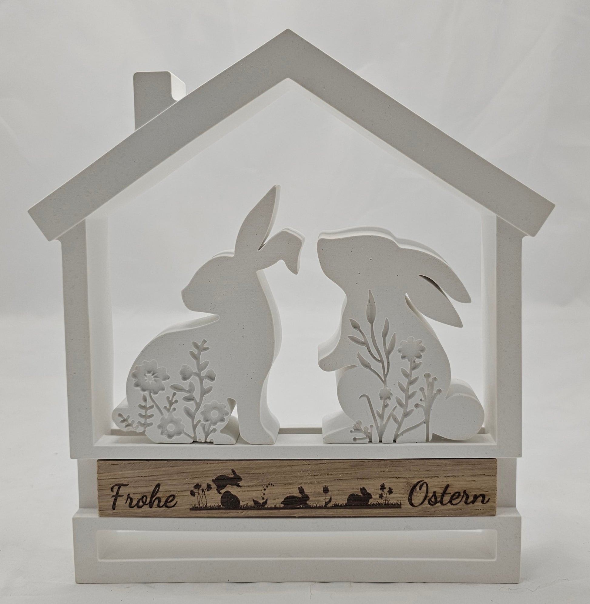 Haus "frohe Ostern" mit zwei entzückenden Hasen aus Raysin