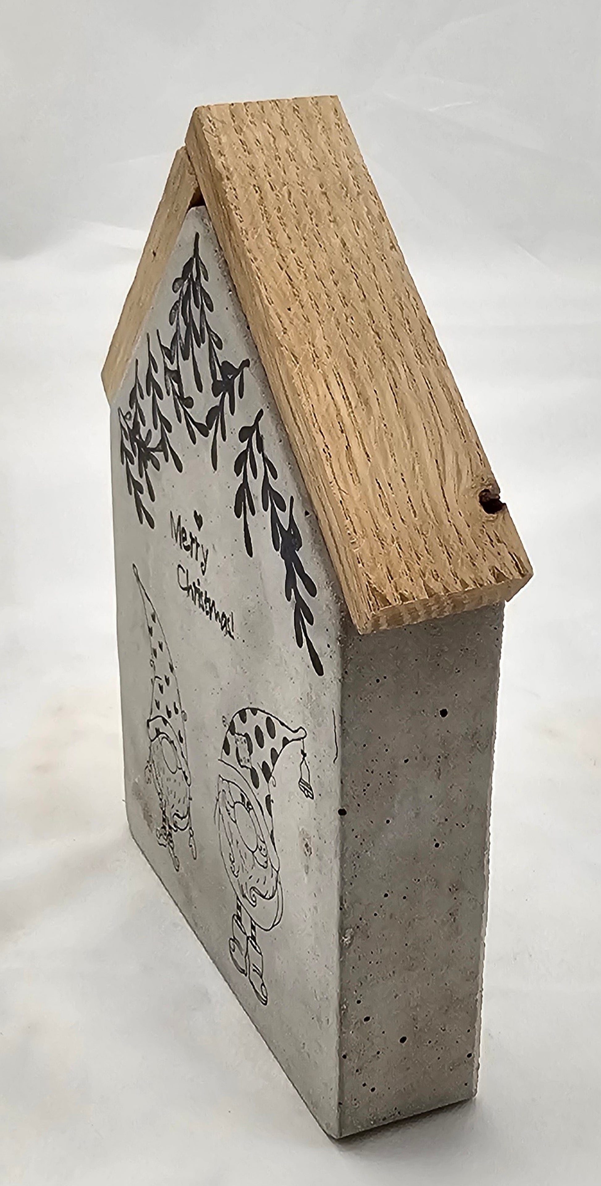 Häuser aus Beton, Winter / Weihnachten mit Holzklötzchen als Dach, gestempelt