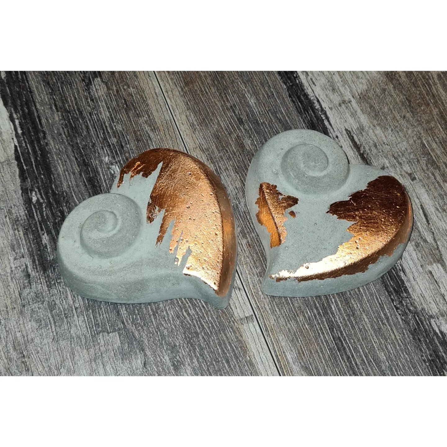 Herzen aus Beton gegossen, bemalt oder Foliert mit Ersatzblattgold, jeweils im 2er oder 3er Set
