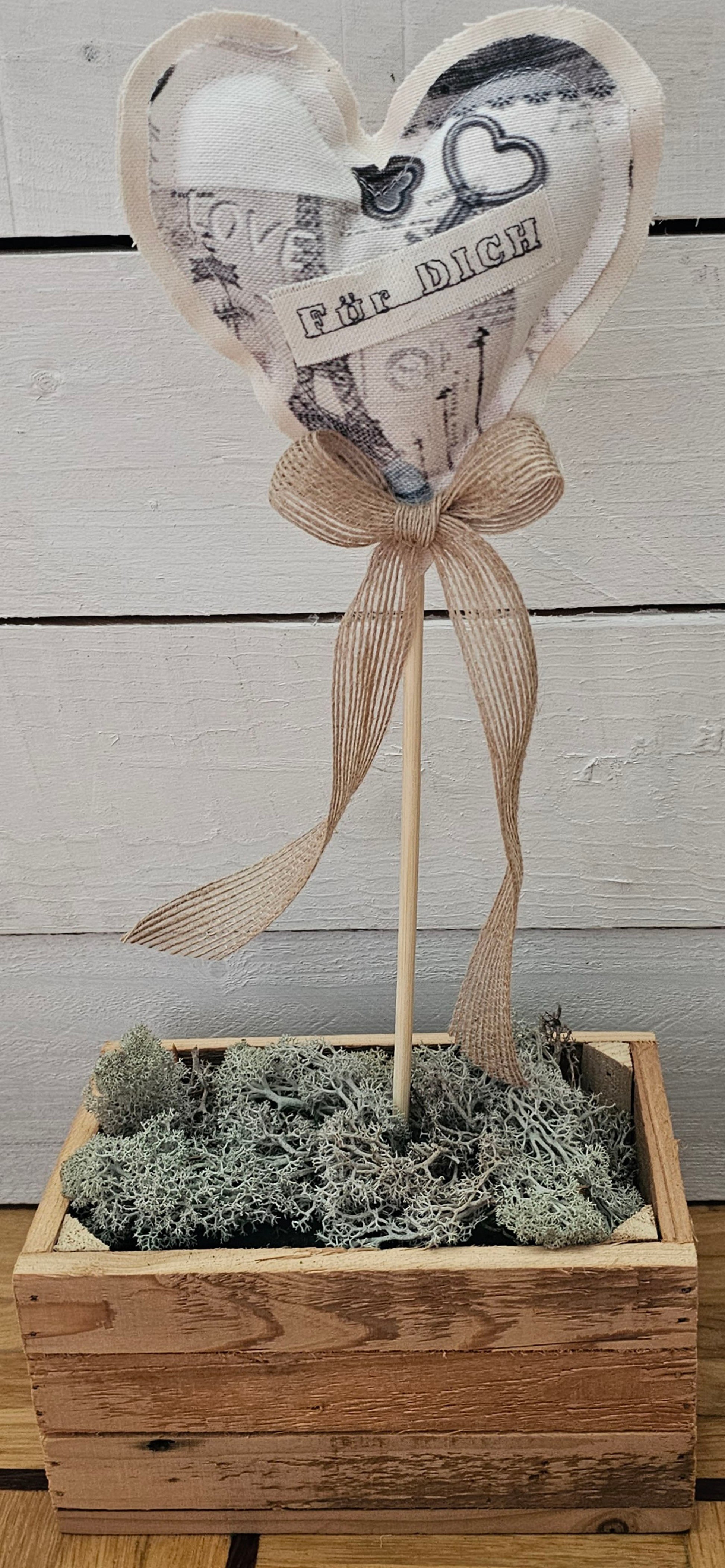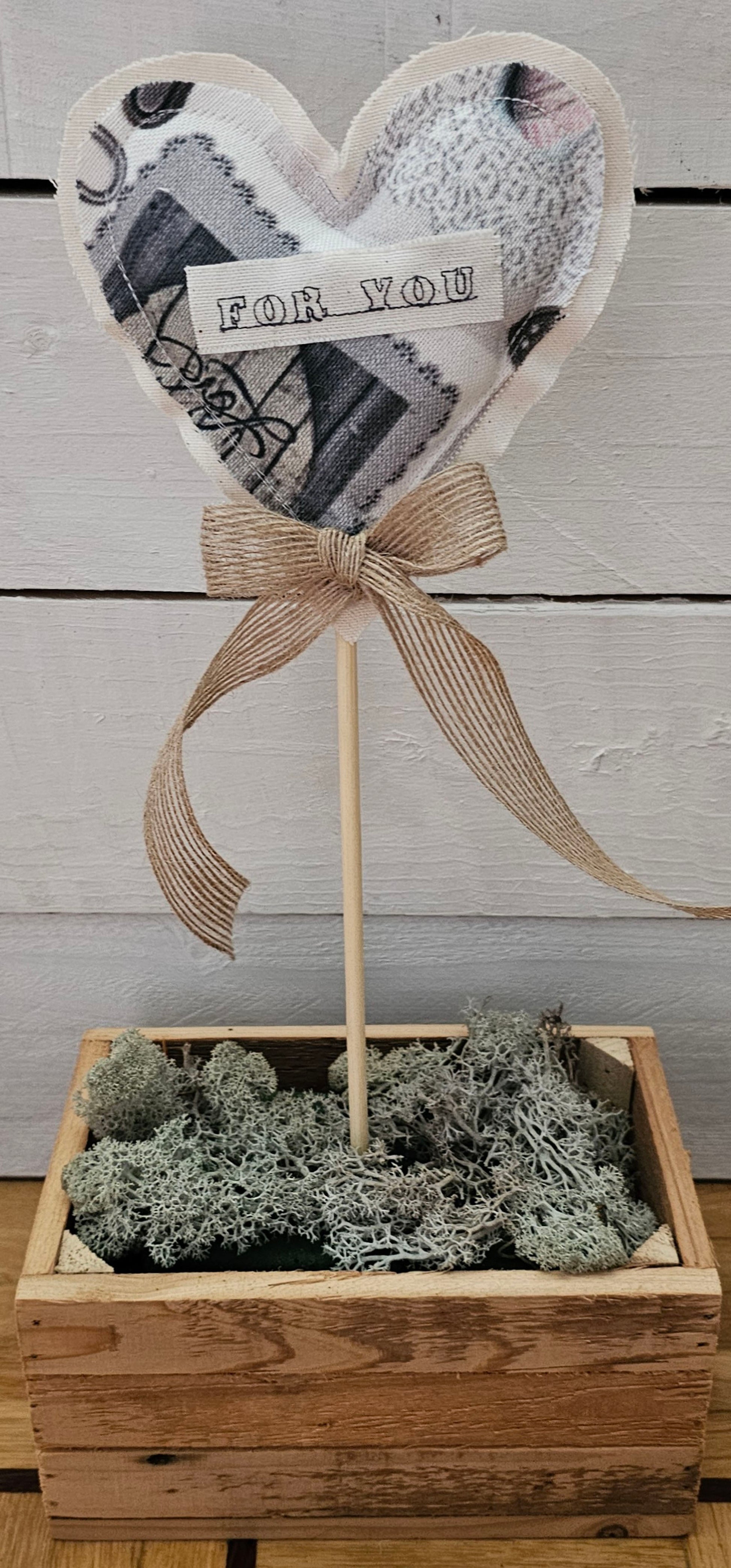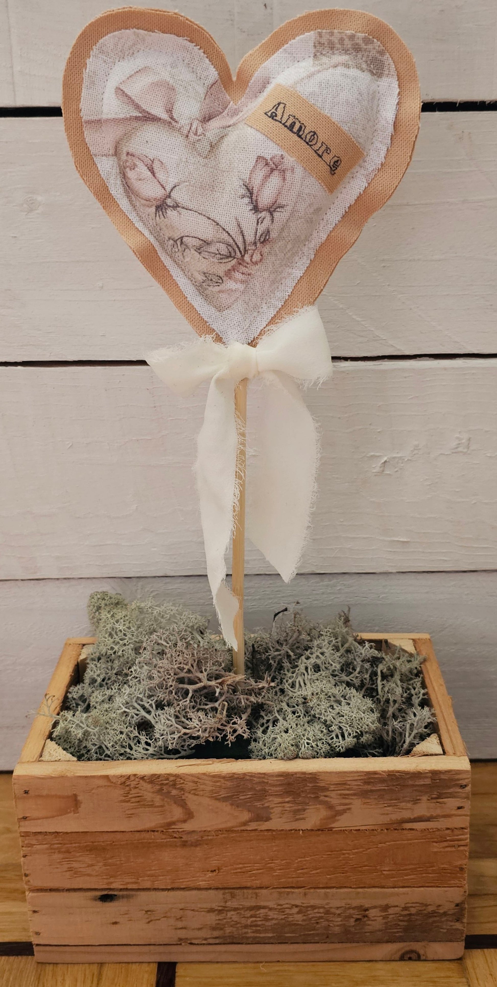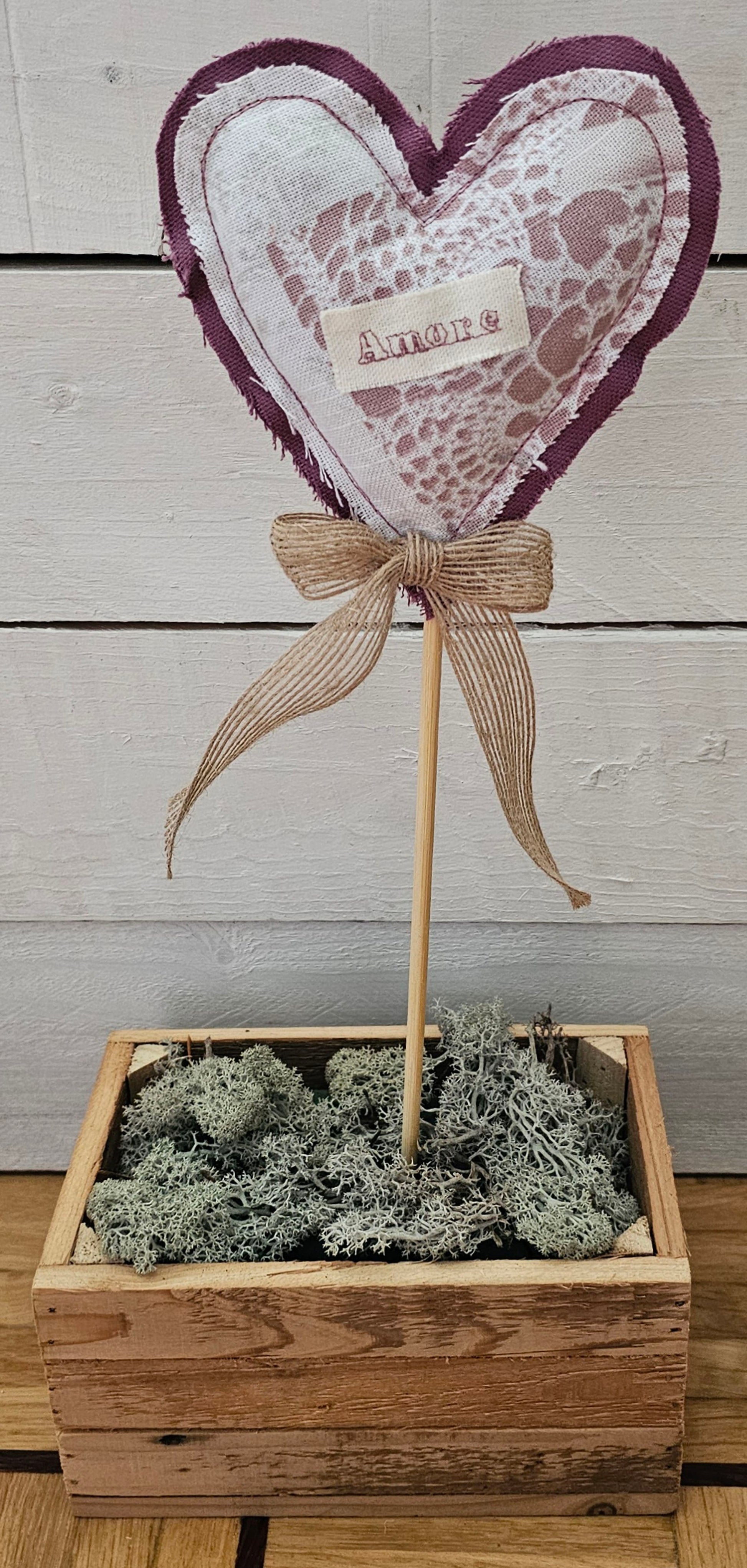 Selbstgenähte zauberhafte Herzen für jeden Anlass, zum stecken mit Holzstab, im Shabby-Chic, bzw. Vintage-Look. Jedes Herz ein Unikat.