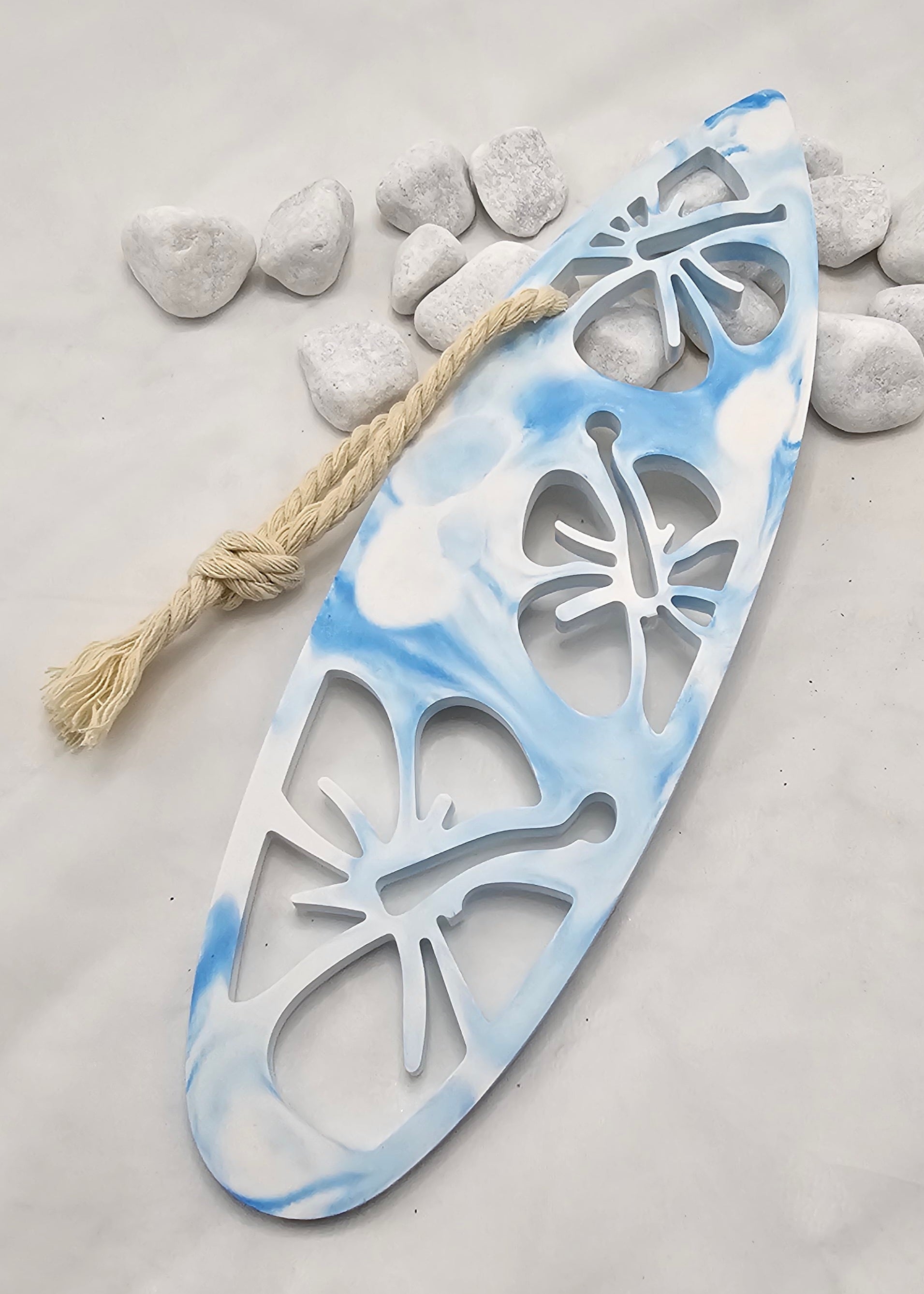 Meer geht immer, und da ich ein totaler Maritim Fan bin musste ich jetzt ein paar schöne Surfbretter aus Raysin gießen, marmoriert mit Betonfarben. Nur für den Innenbereich geeignet, da das Material nicht wetterfest ist.