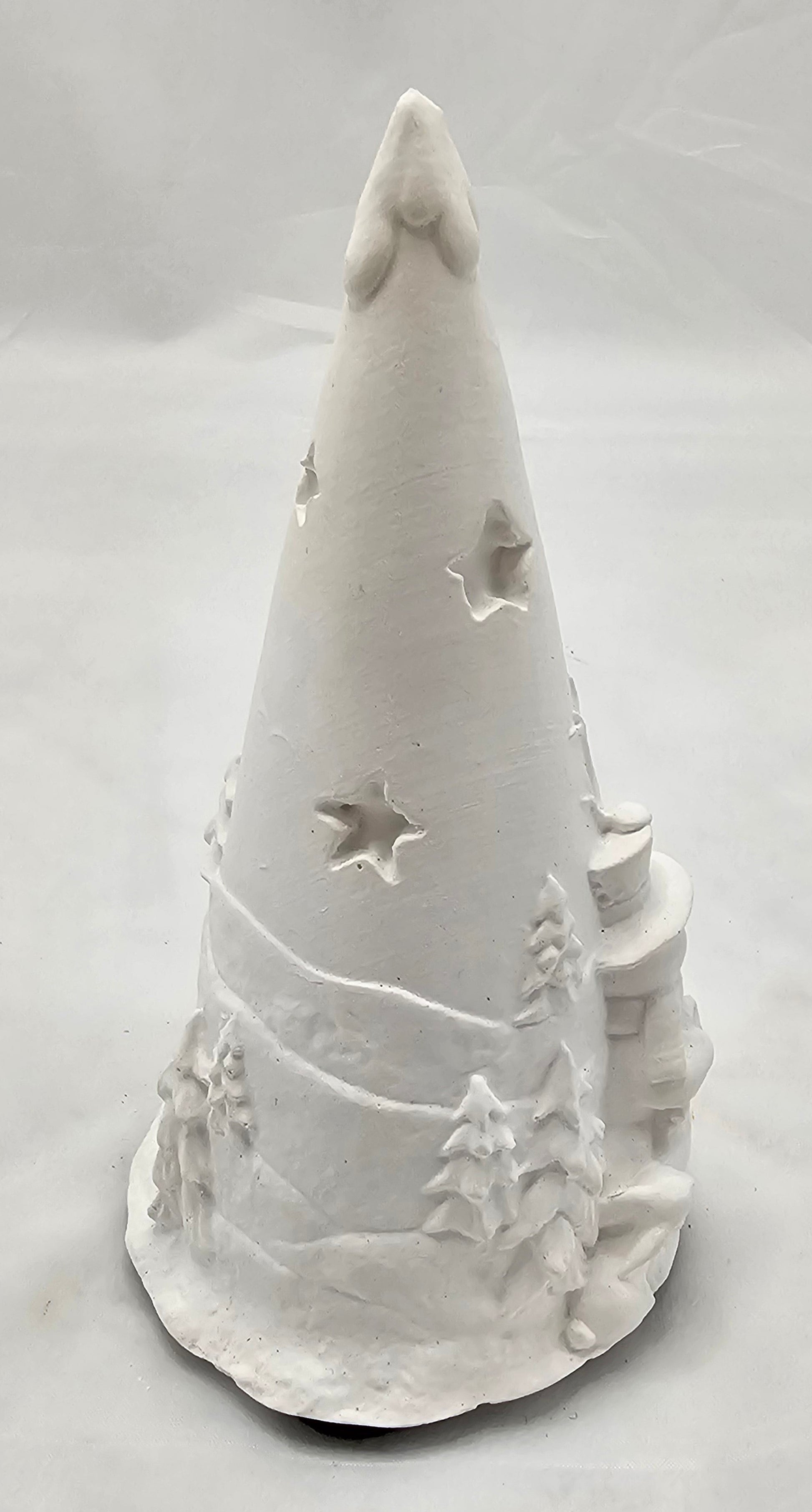 Tanne massiv, aus Raysin gegossen mit winterlichem Relief.