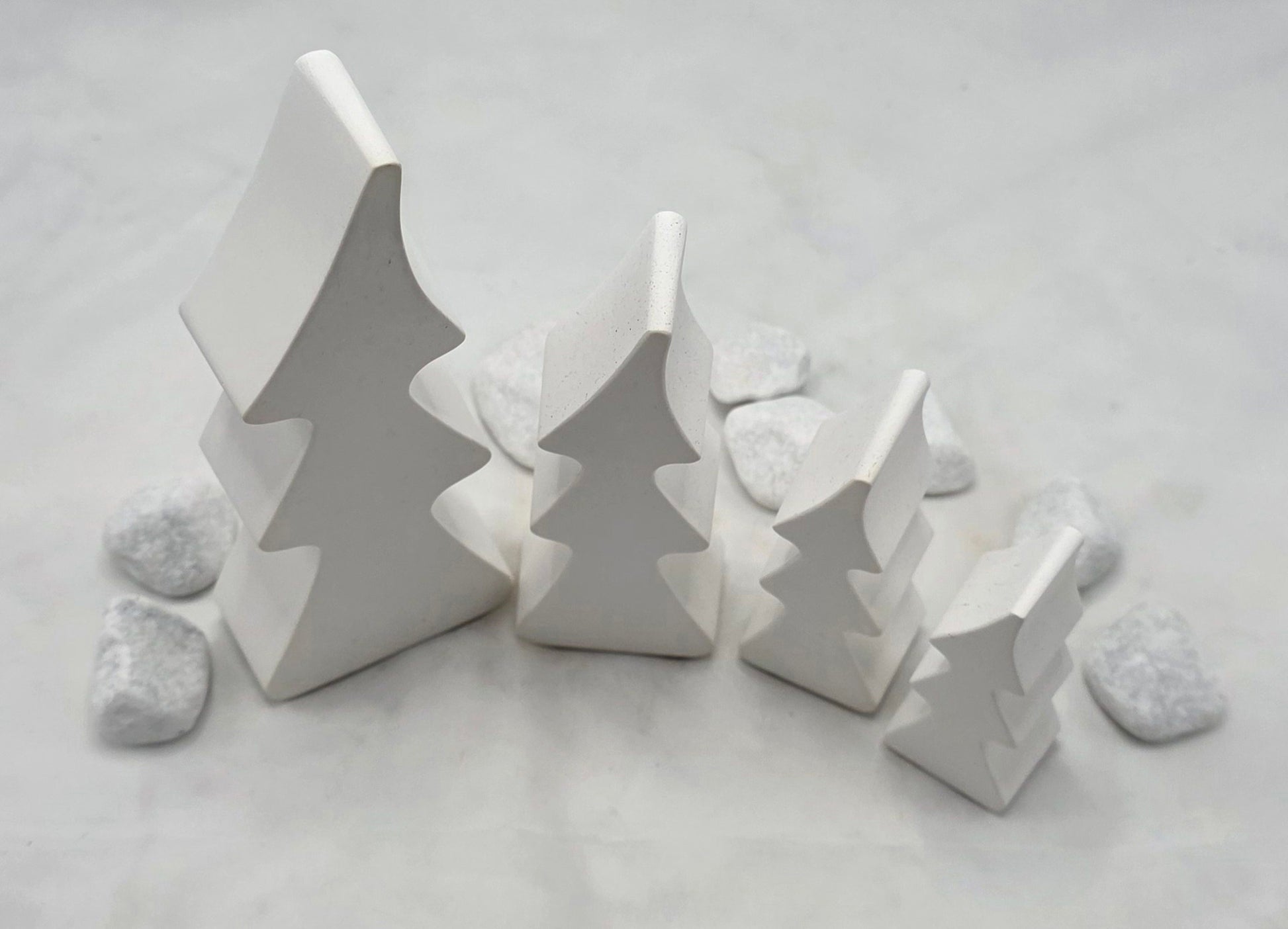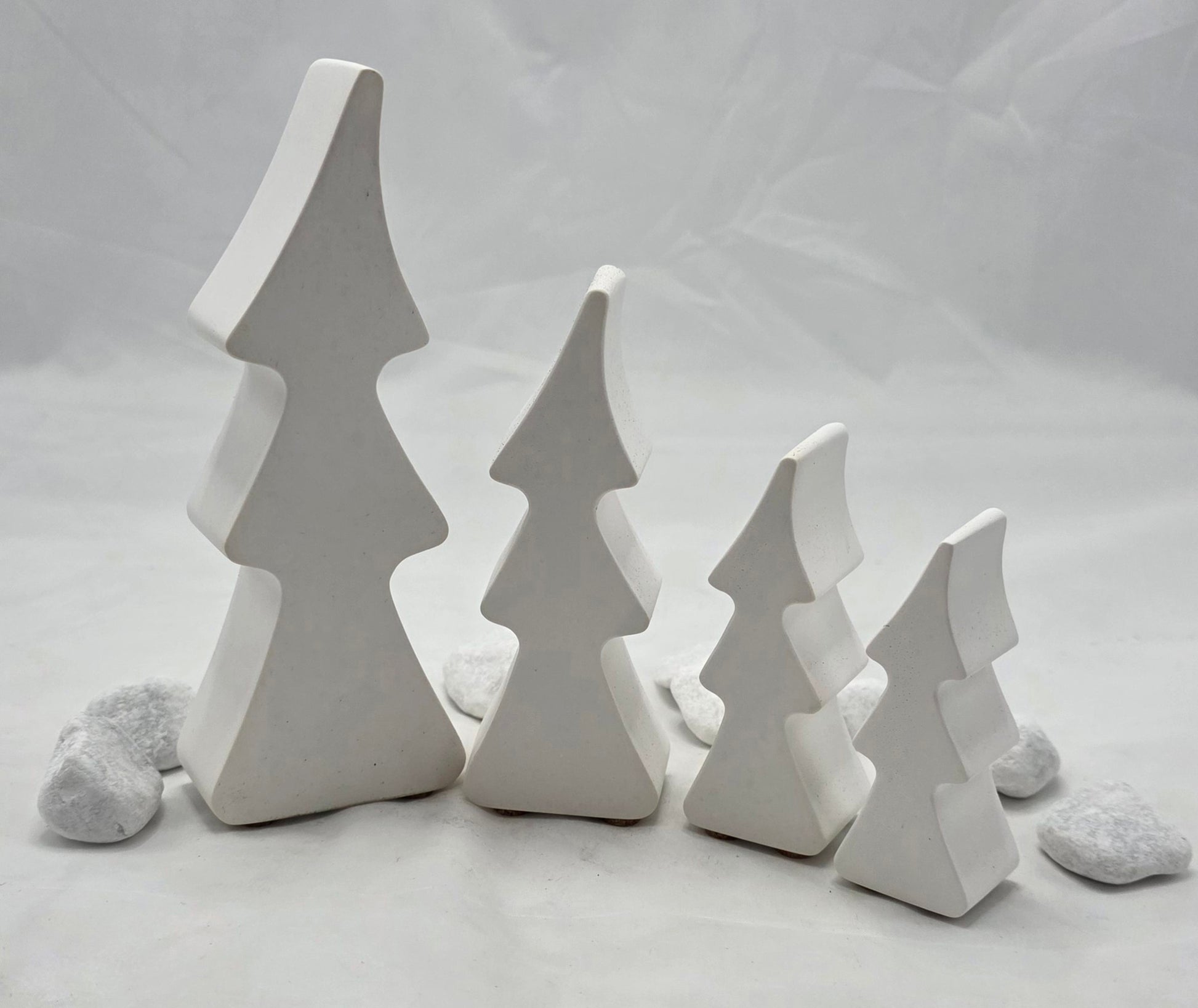 Tannen im 4er Set, aus Raysin gegossen, zeitlos schöne Weihnachts,- und Winterdeko.