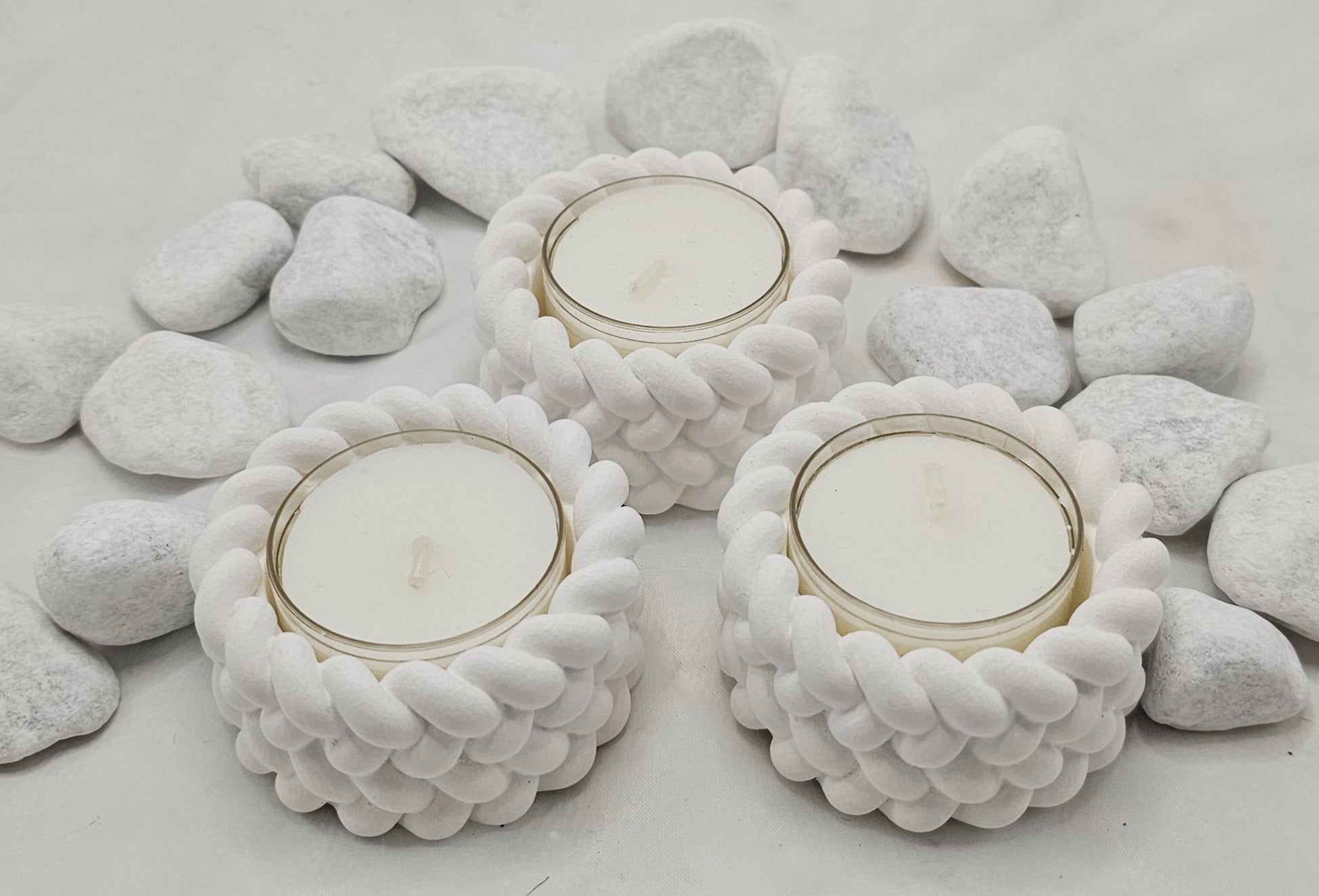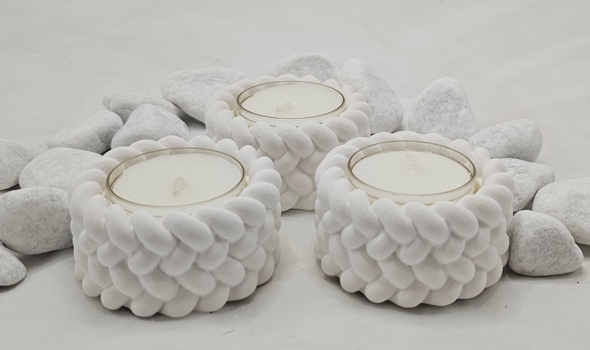 Teelichthalter aus Raysin, Wolloptik incl. Teelicht.