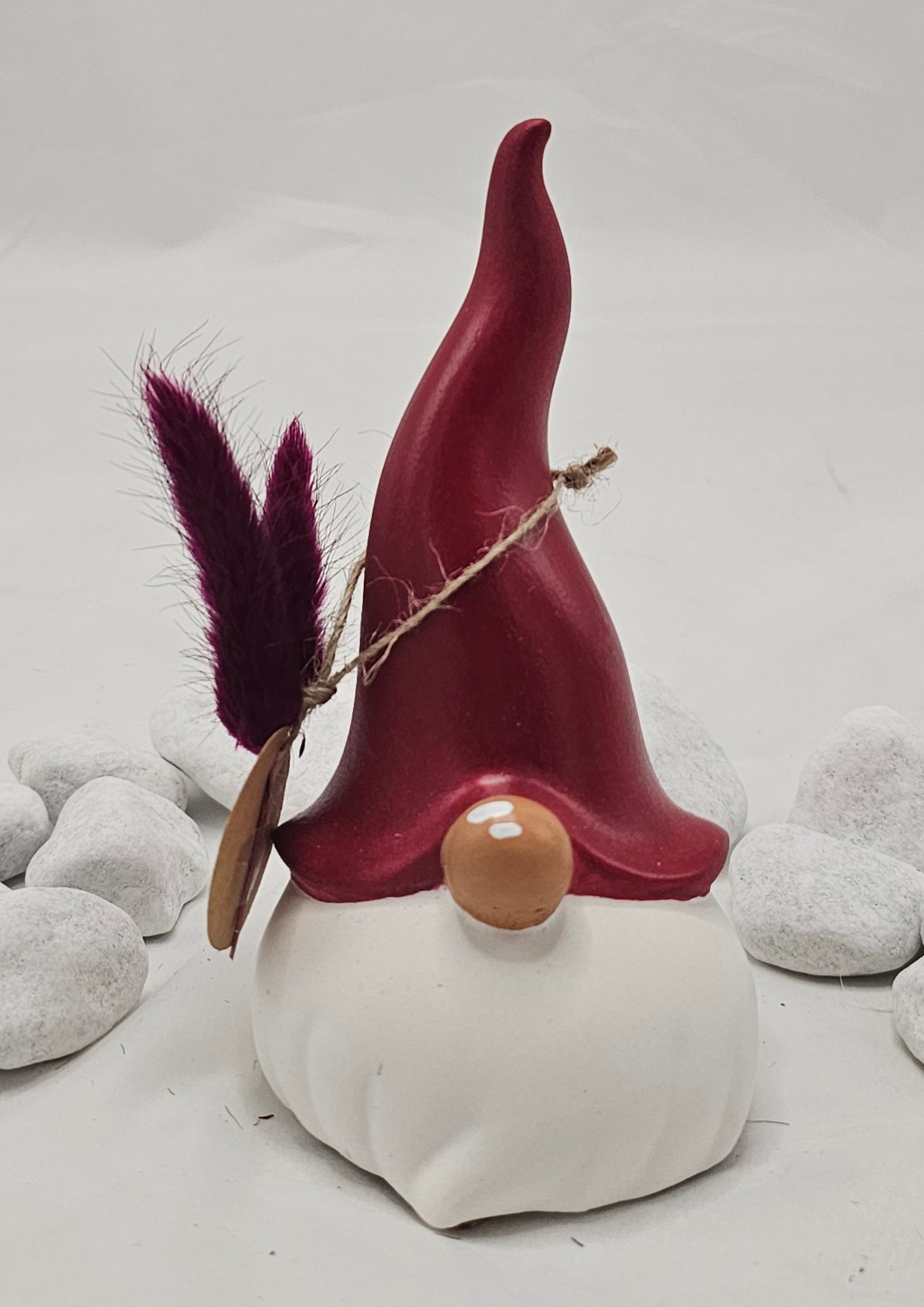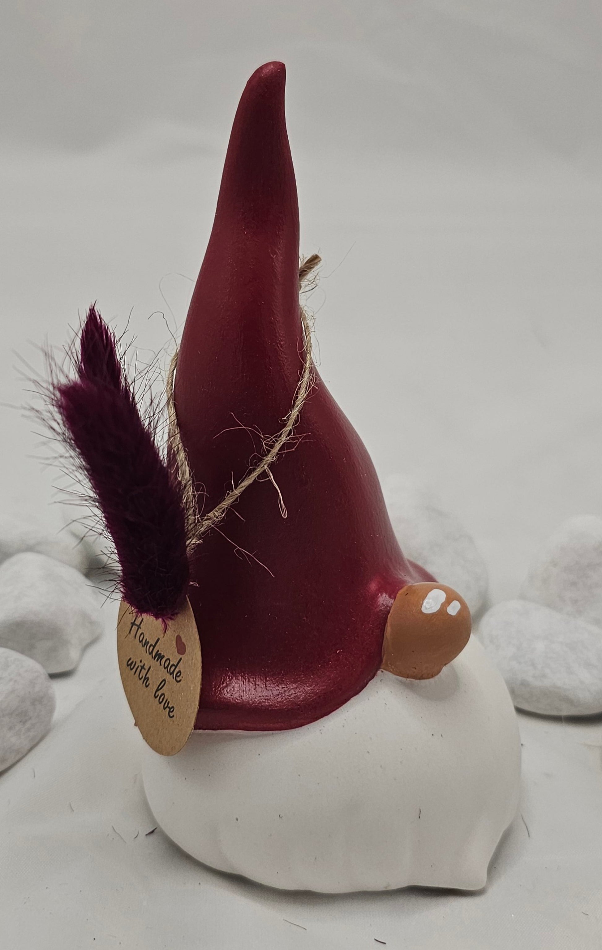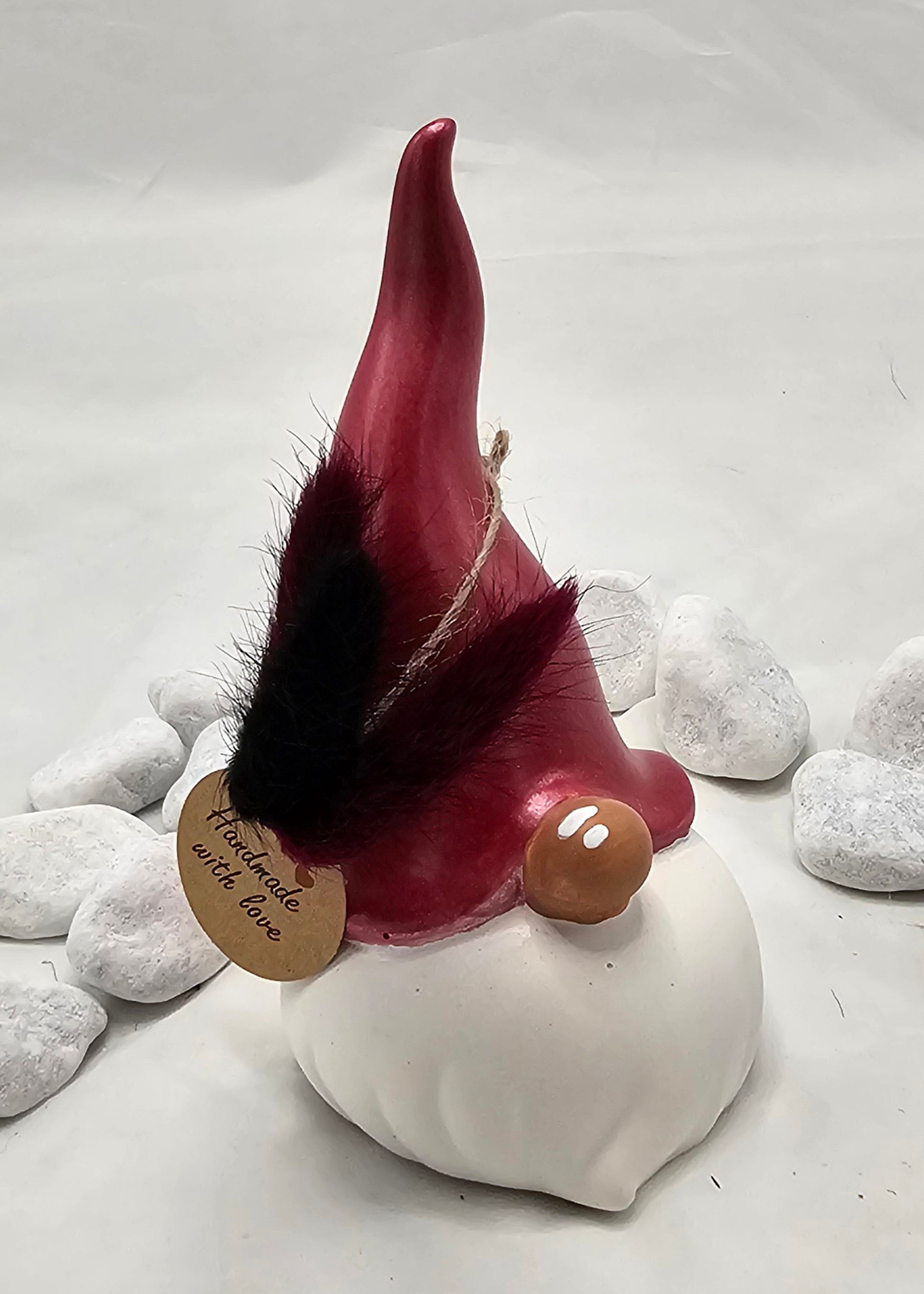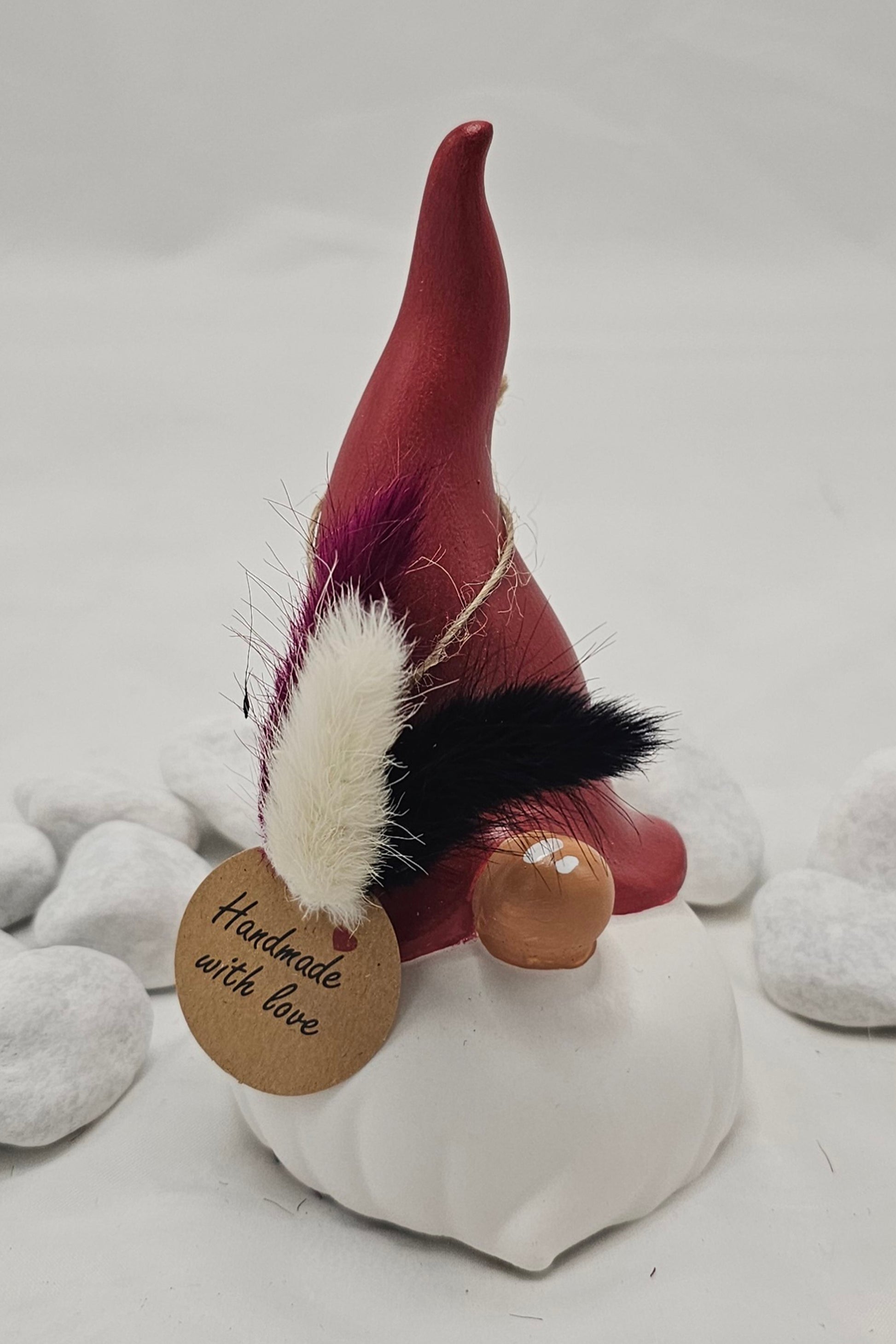 Wichtel aus Raysin, mit farbiger Mütze und bemalter Nase. Nur für den Innenbereich geeignet, da das Material nicht wetterfest ist.