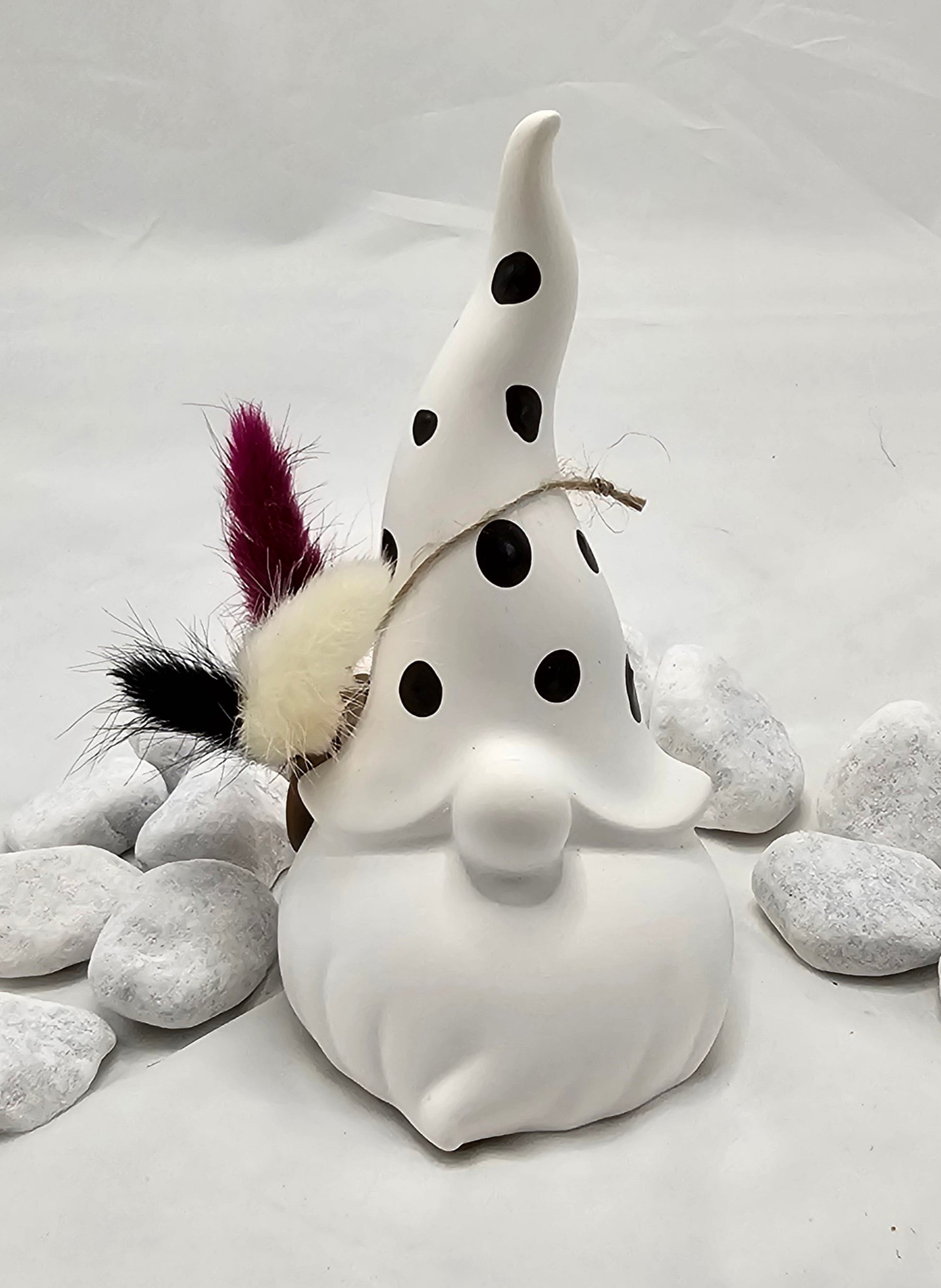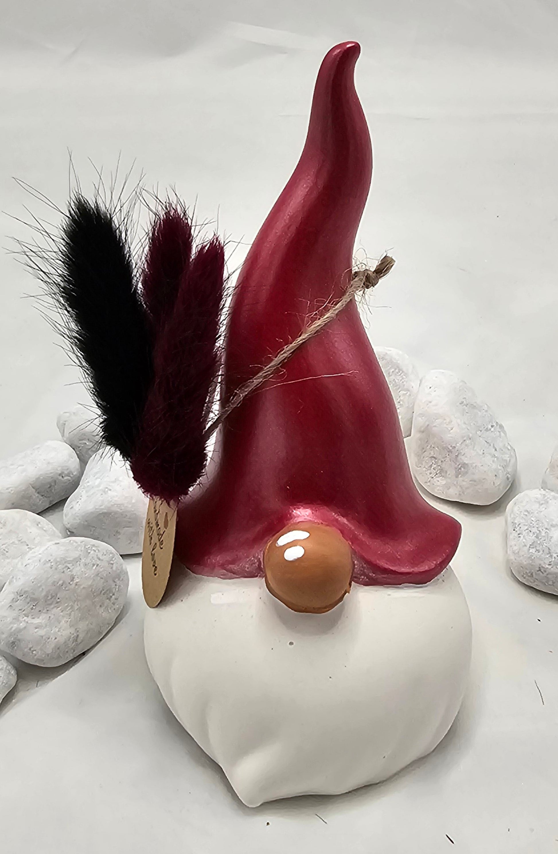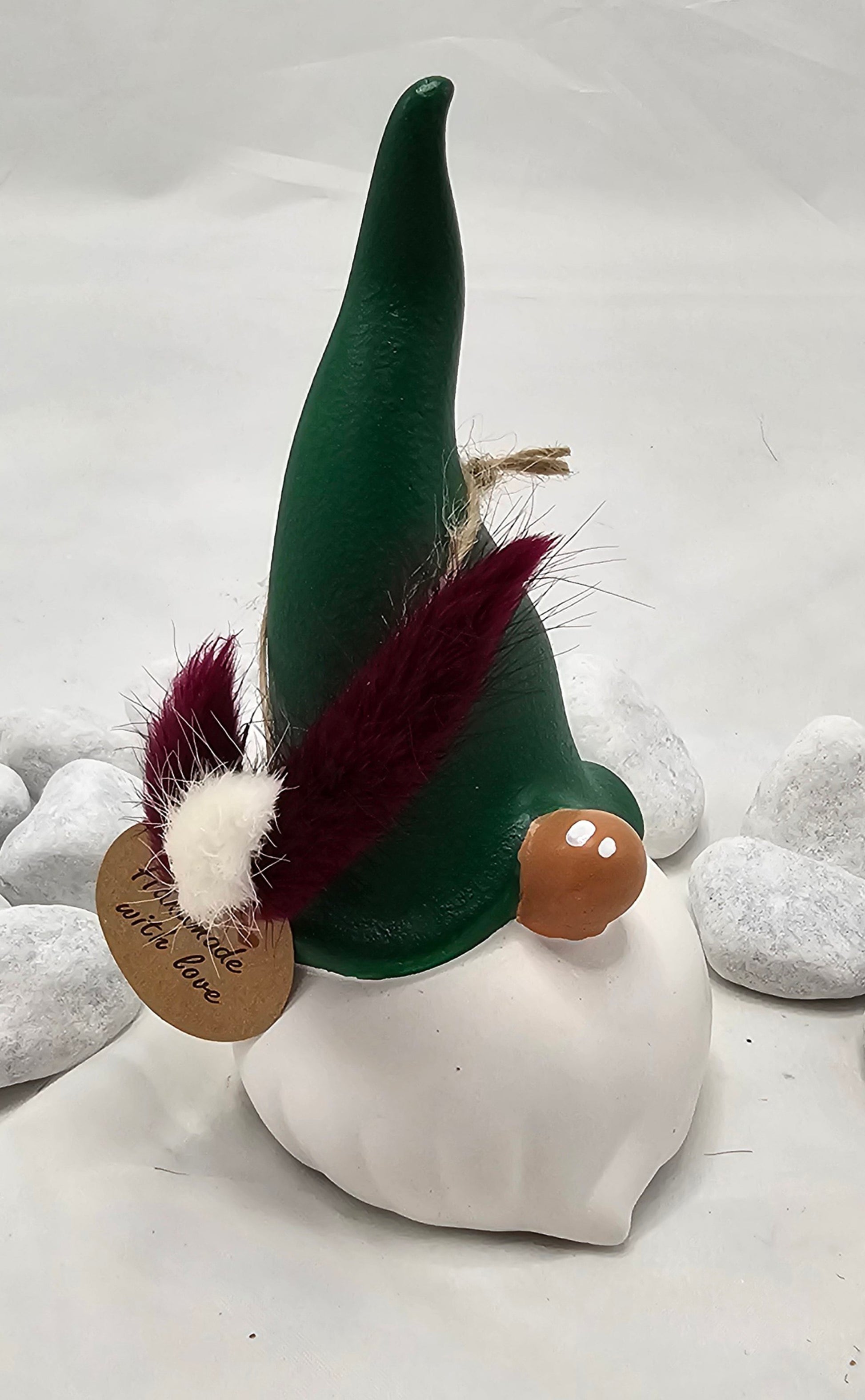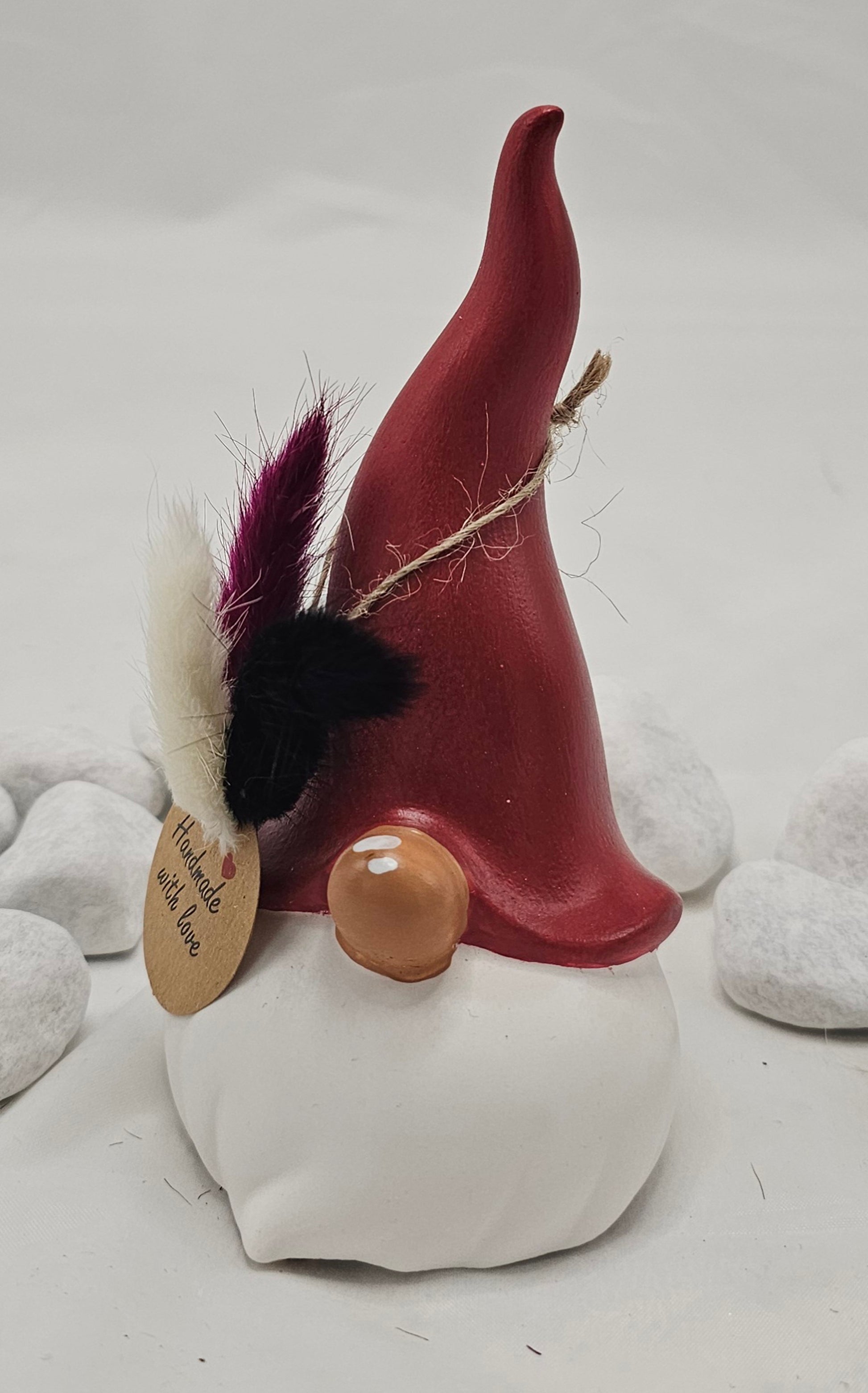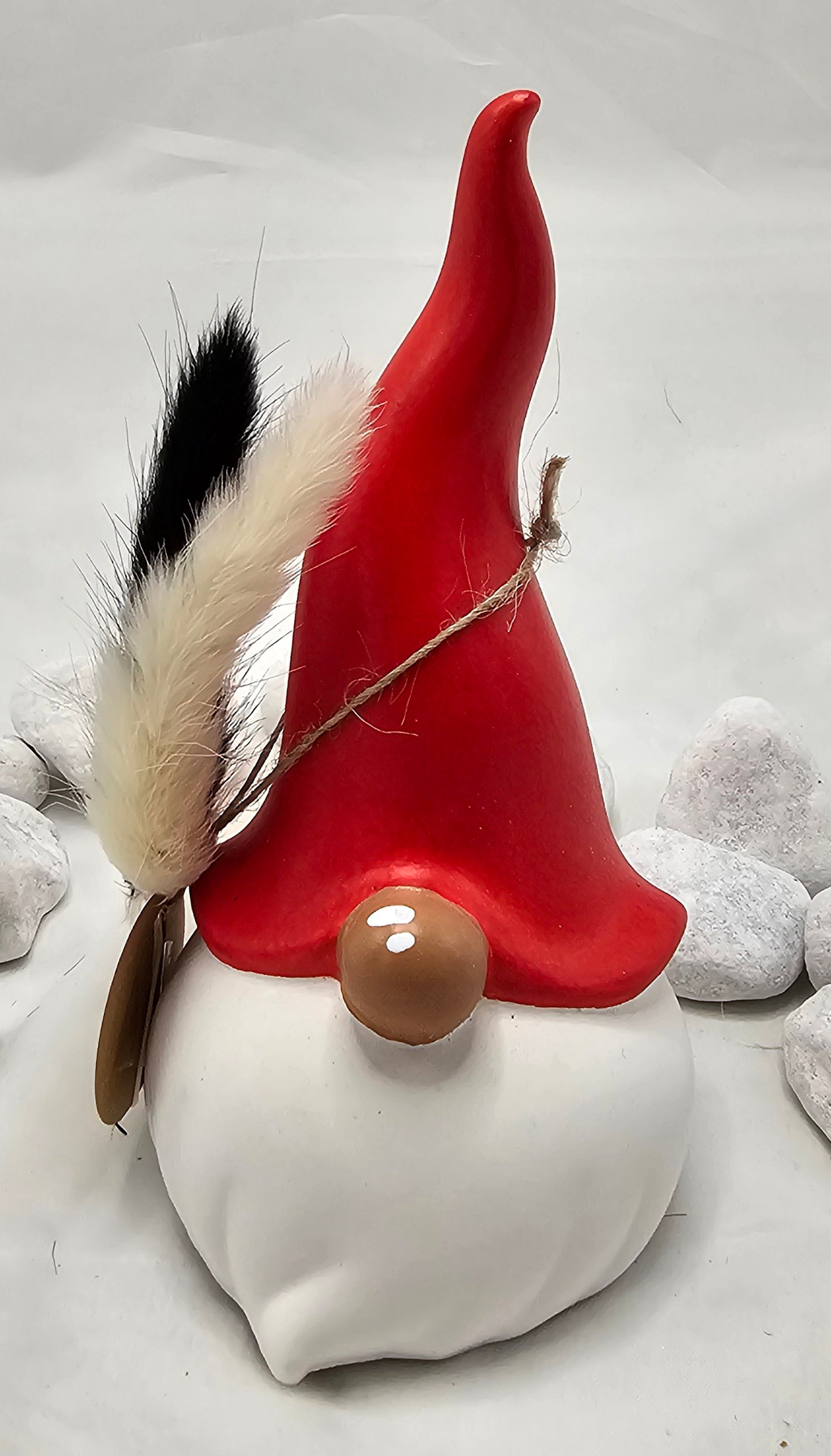 Wichtel aus Raysin, mit farbiger Mütze und bemalter Nase. Nur für den Innenbereich geeignet, da das Material nicht wetterfest ist.