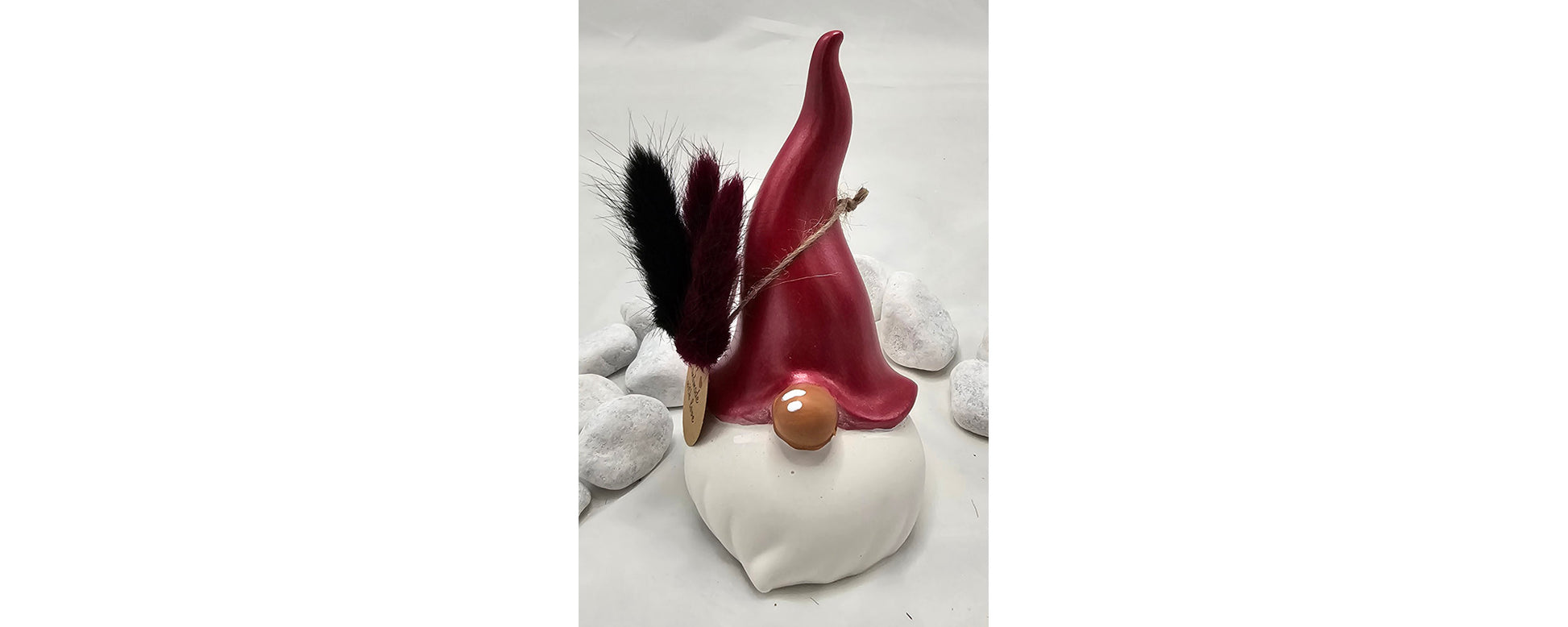Wichtel aus Raysin, mit bemalter Mütze und Nase.