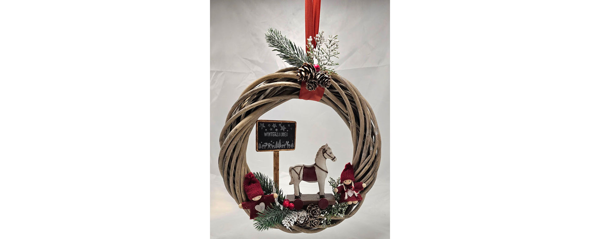 Winterkranz, Weihnachtskranz aus Ratan, nostalgisch dekoriert